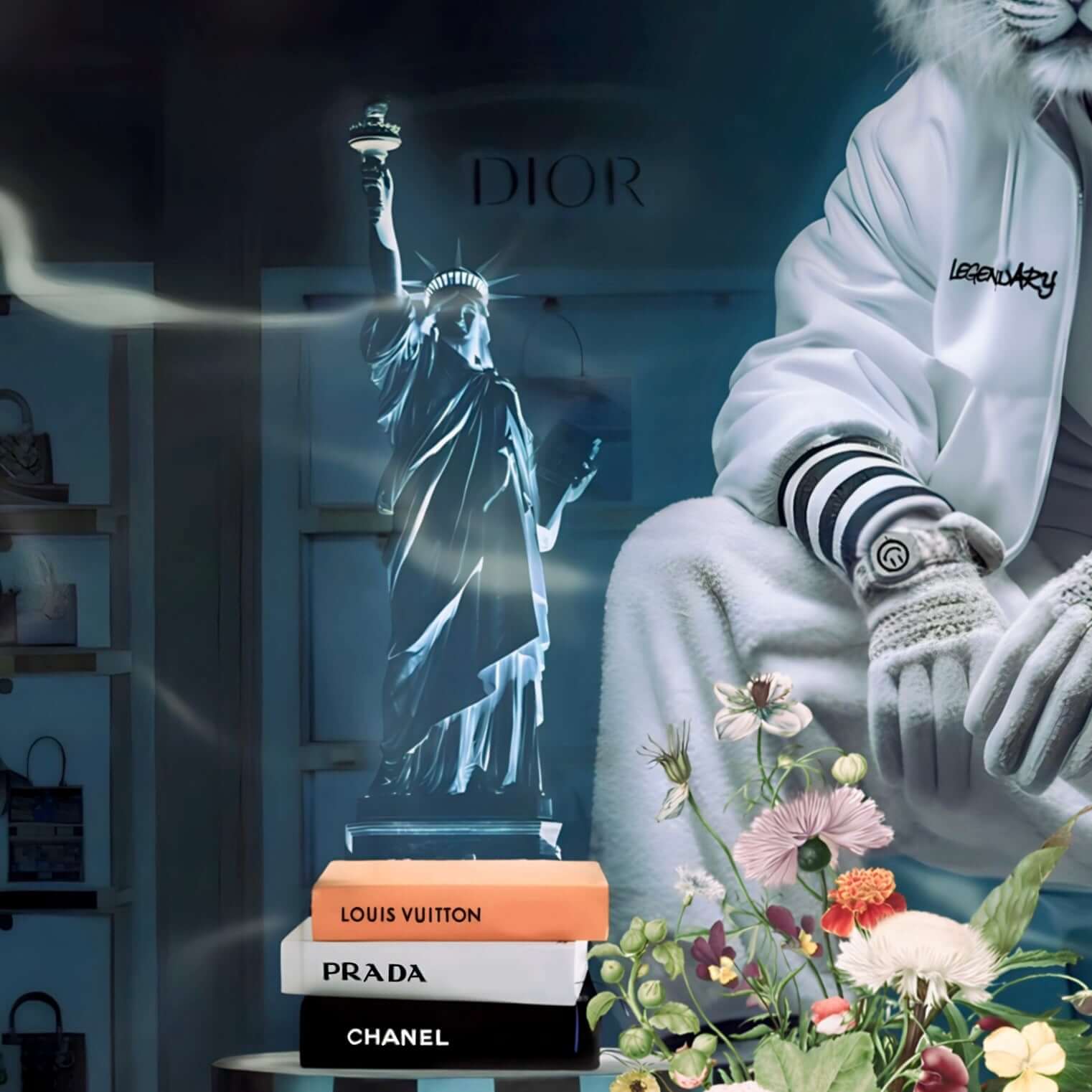 Fuses classical portraiture with street and contemporary culture — a bold statement for modern collectors.